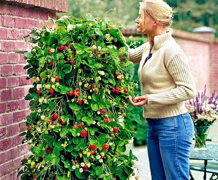 Forestil dig glæden hos dine børn, når du tillader dem at plukke, i armshøjde, disse store søde, modne, rene og jordfri frugter af "din klatrende jordbærplante". Du høster indtil den første frost, længe efter den normale jordbærsæson, og år efter år vil de fortsætte med at give dig en utrolig høst af store, lækre bær.